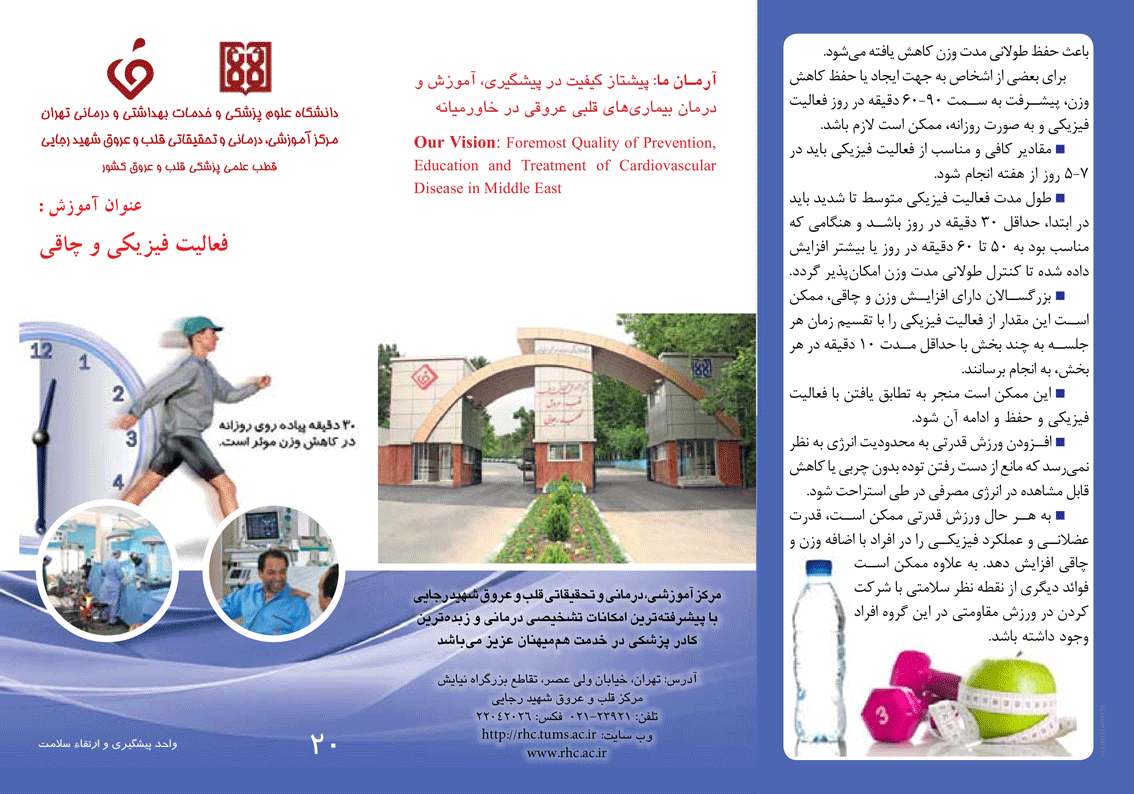 فعالیت فیزیکی و چاقی تعداد بازدید:۷۹۸ ارسال به دیگران نام شما ایمیل شما ایمیل دریافتکننده ارسال انصراف